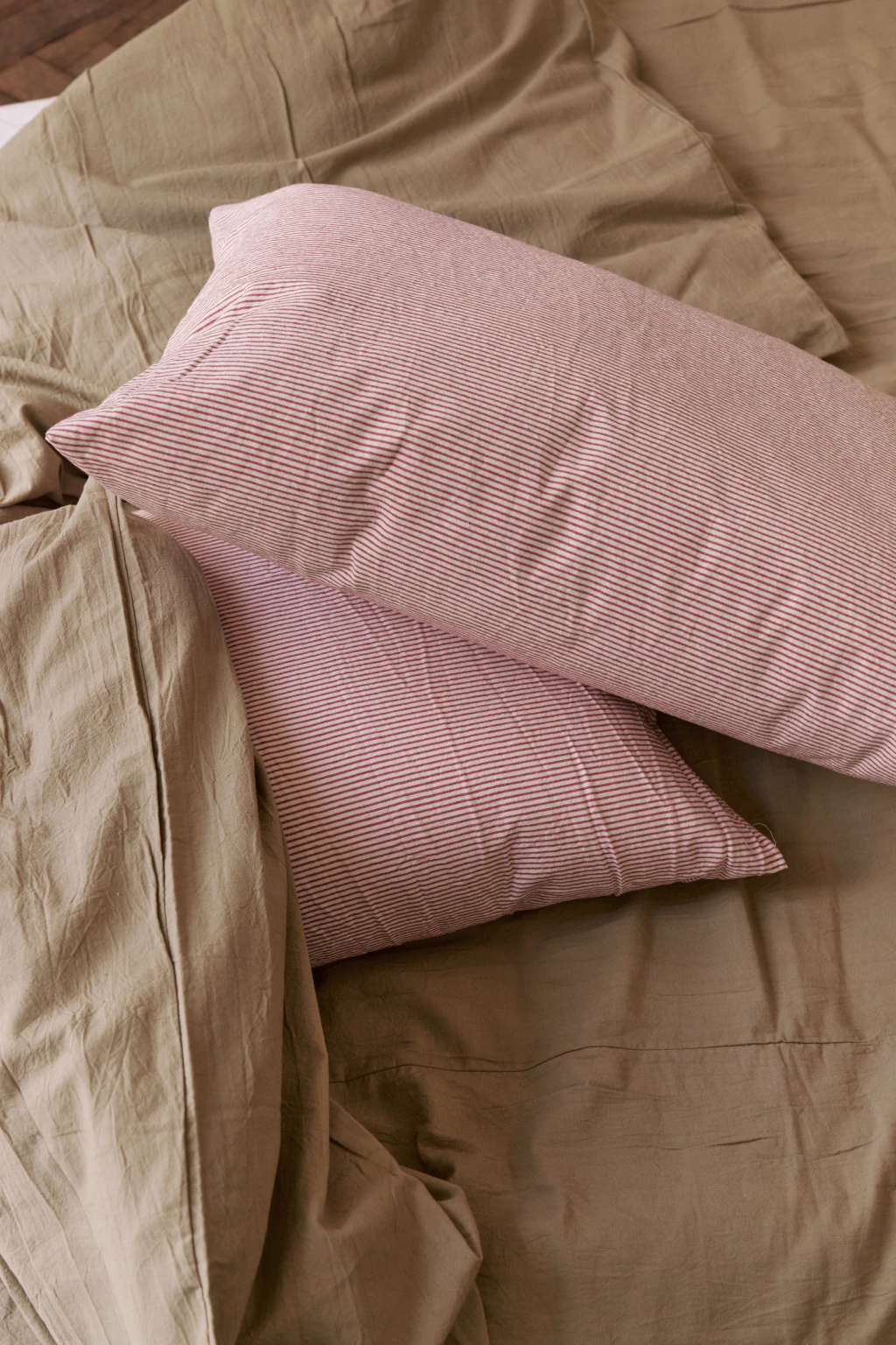 Almohadón de vellón siliconado con fundas algodón tejido rayado con terminación simple.