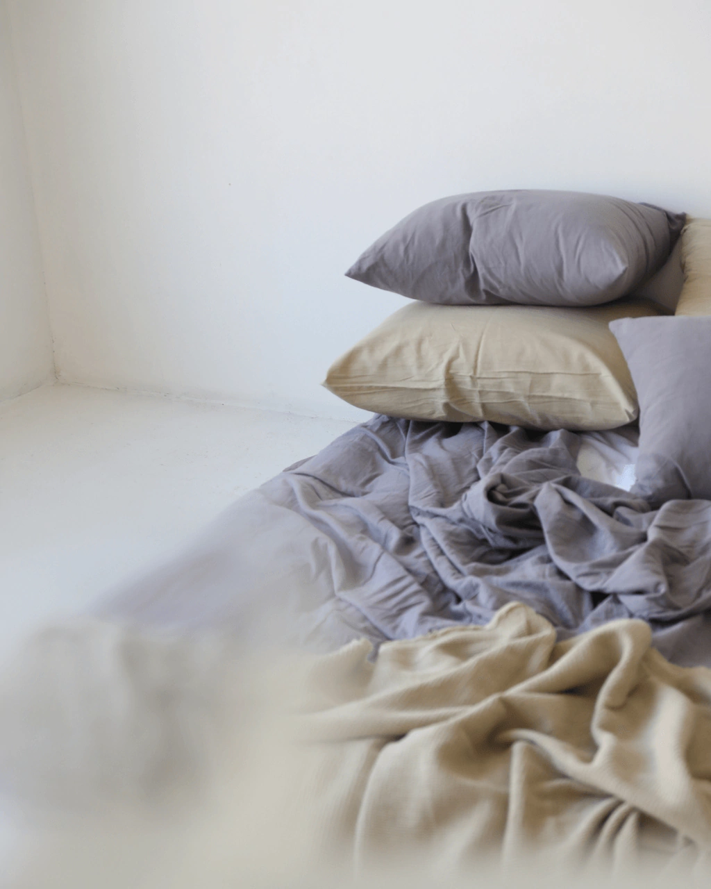 Cubre Edredón Lino (65% lino / 35% viscosa ). Terminación con tiritas para atar. Cada cubre edredón viene con 2 fundas de 70x50.