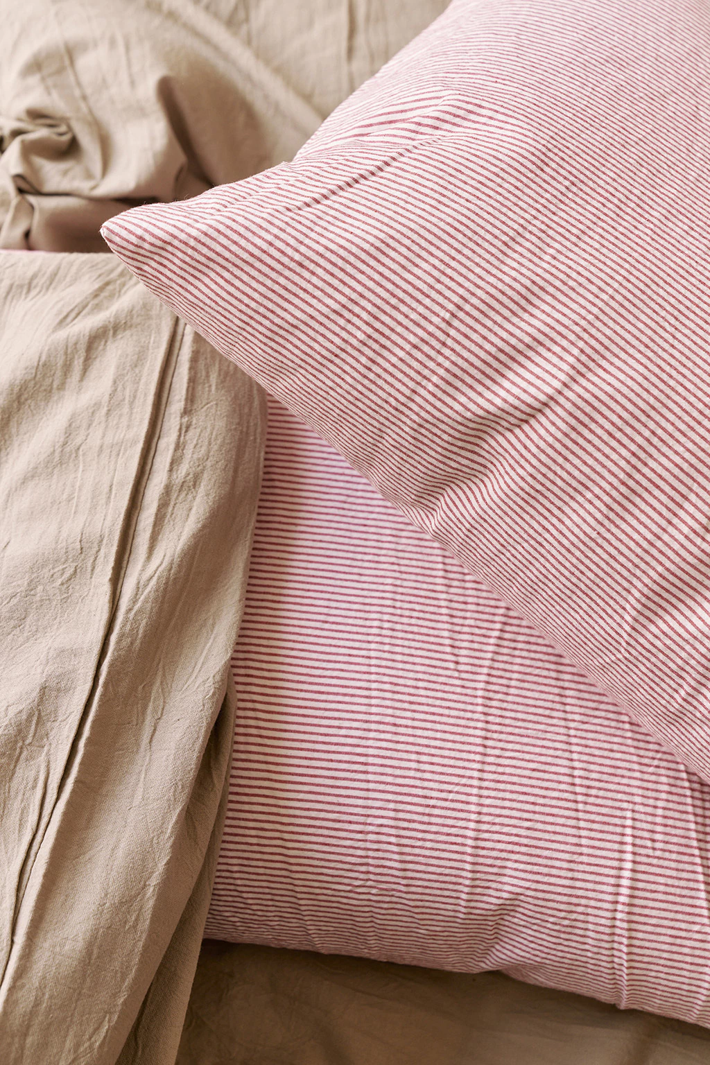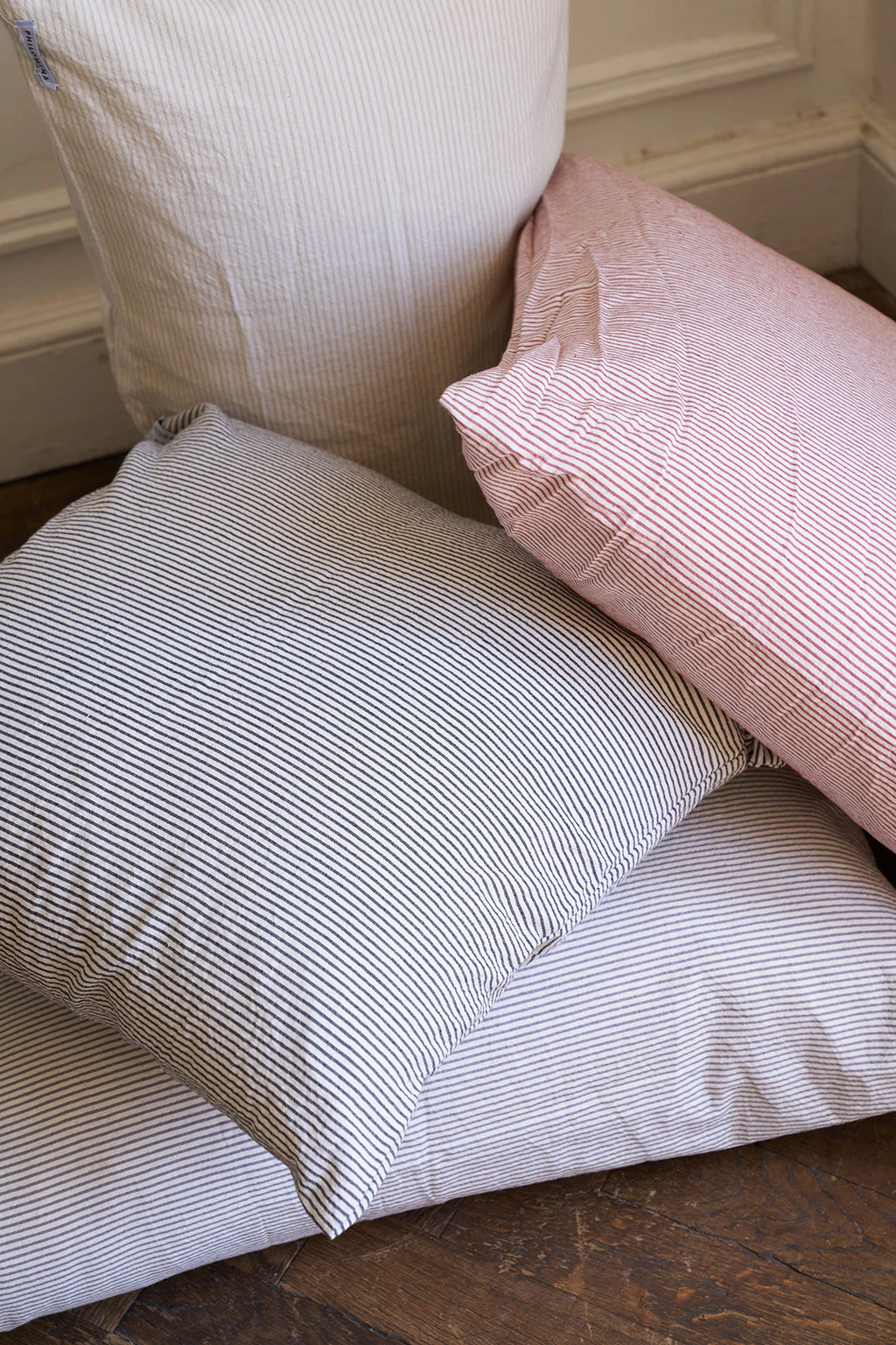 Fundas de almohadones tejido rayado de puro algodón con terminación simple.